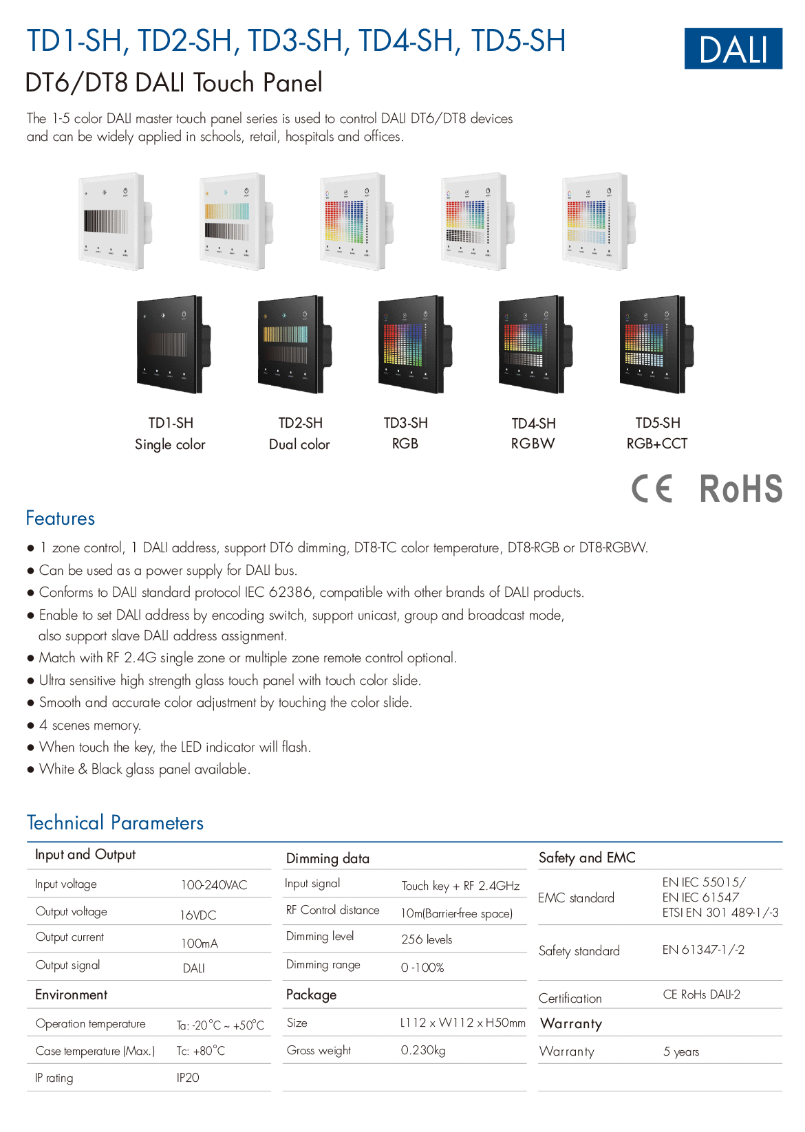 1 Zone Wall Mounted Touch DALI Panel TD3-SH