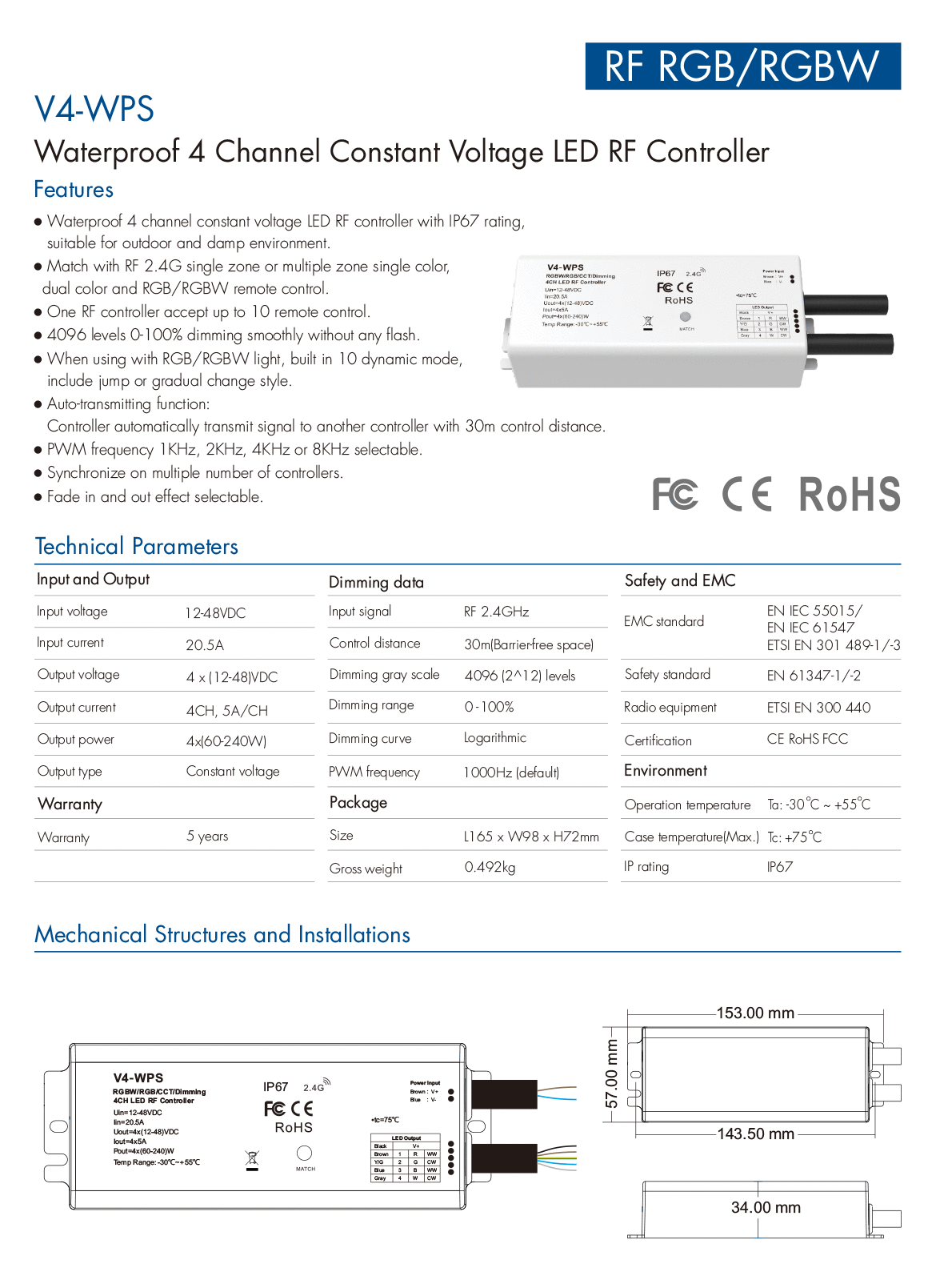 4CH*5A 12-48VDC IP67 Waterproof Controller V4-WPS