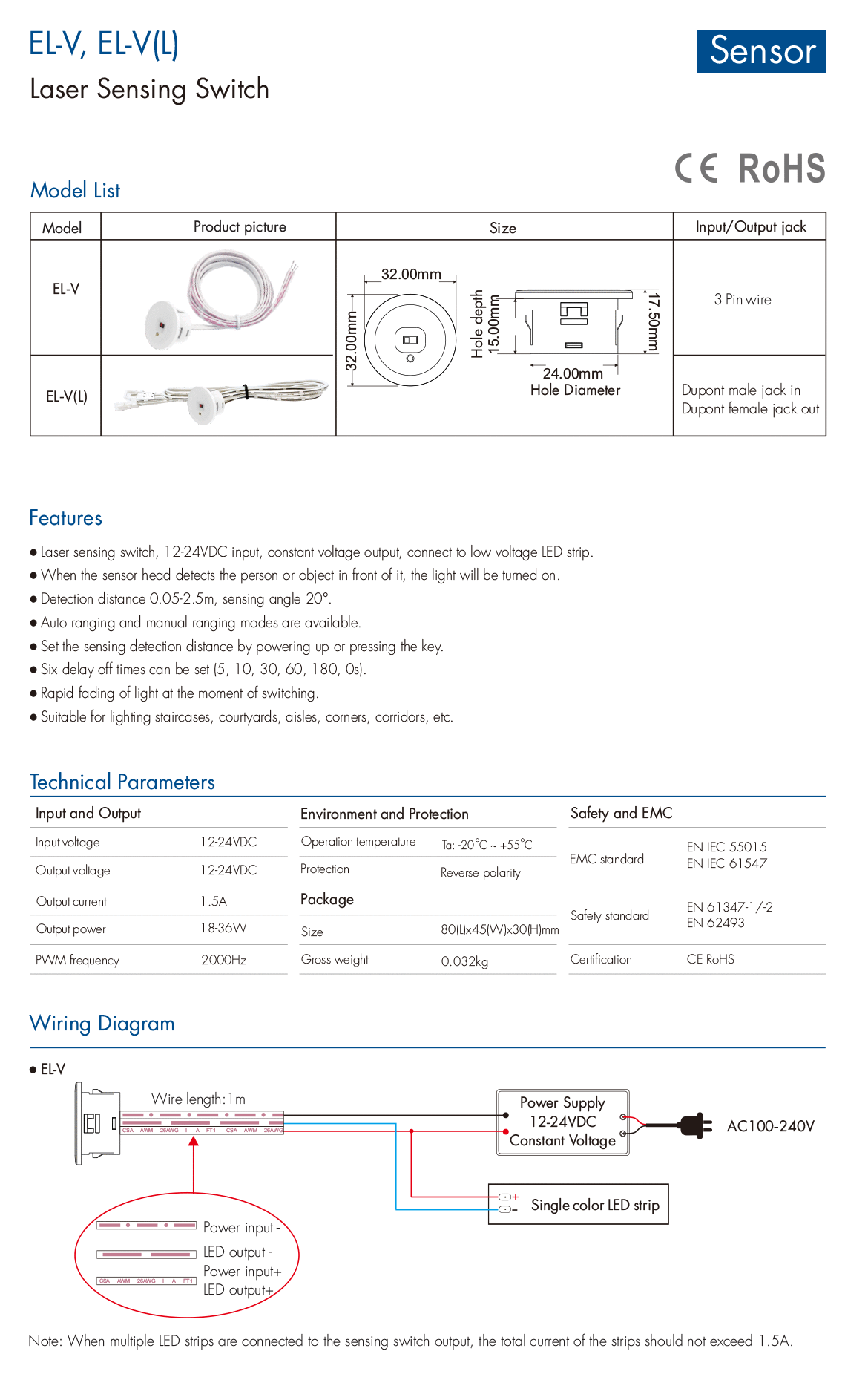 12-24VDC 1.5A Laser Sensing Switch EL-V(L)