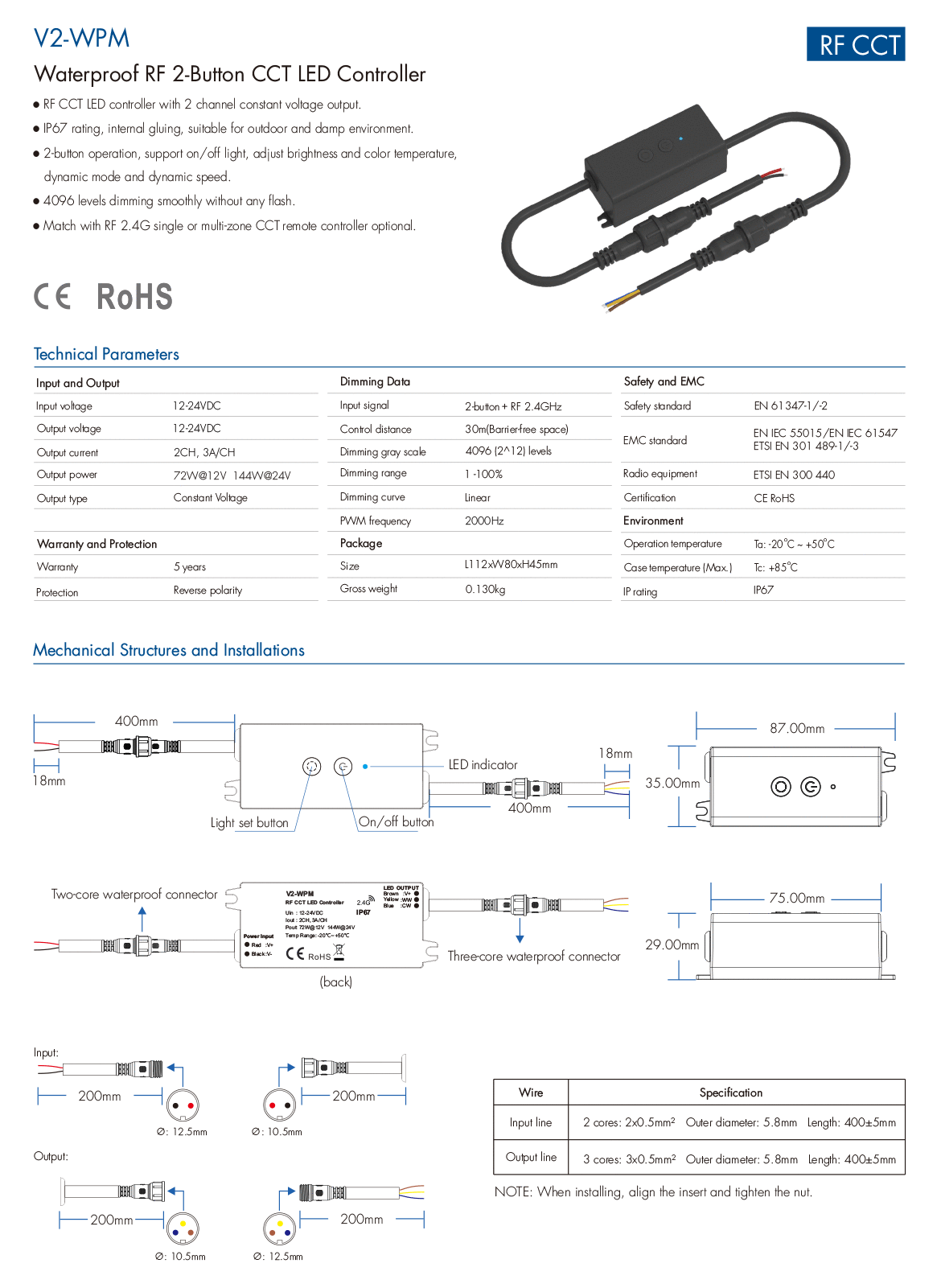 2CH*3A 12-24VDC IP67 2-Button Waterproof Controller V2-WPM