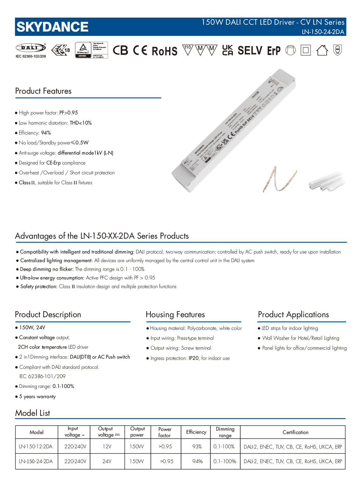 150W 24V DALI CCT CV LED Driver LN-150-24-2DA