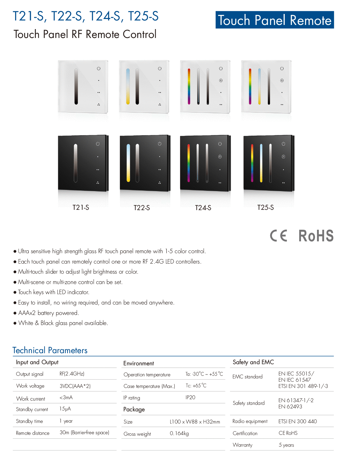 1 Zone 2 Scene/2 Zone RGB/RGBW Remote Control(2*AAA Battery) T24-S