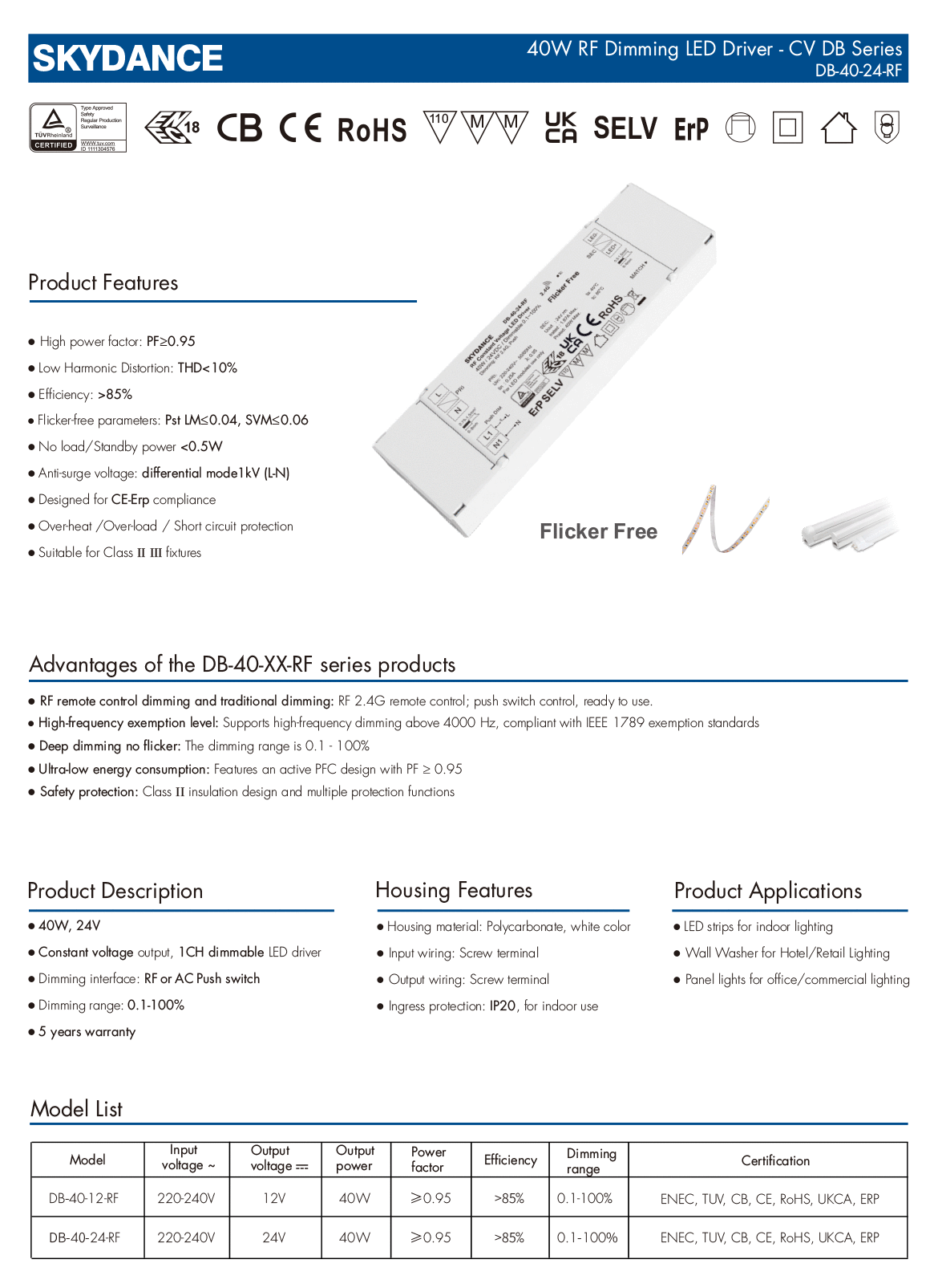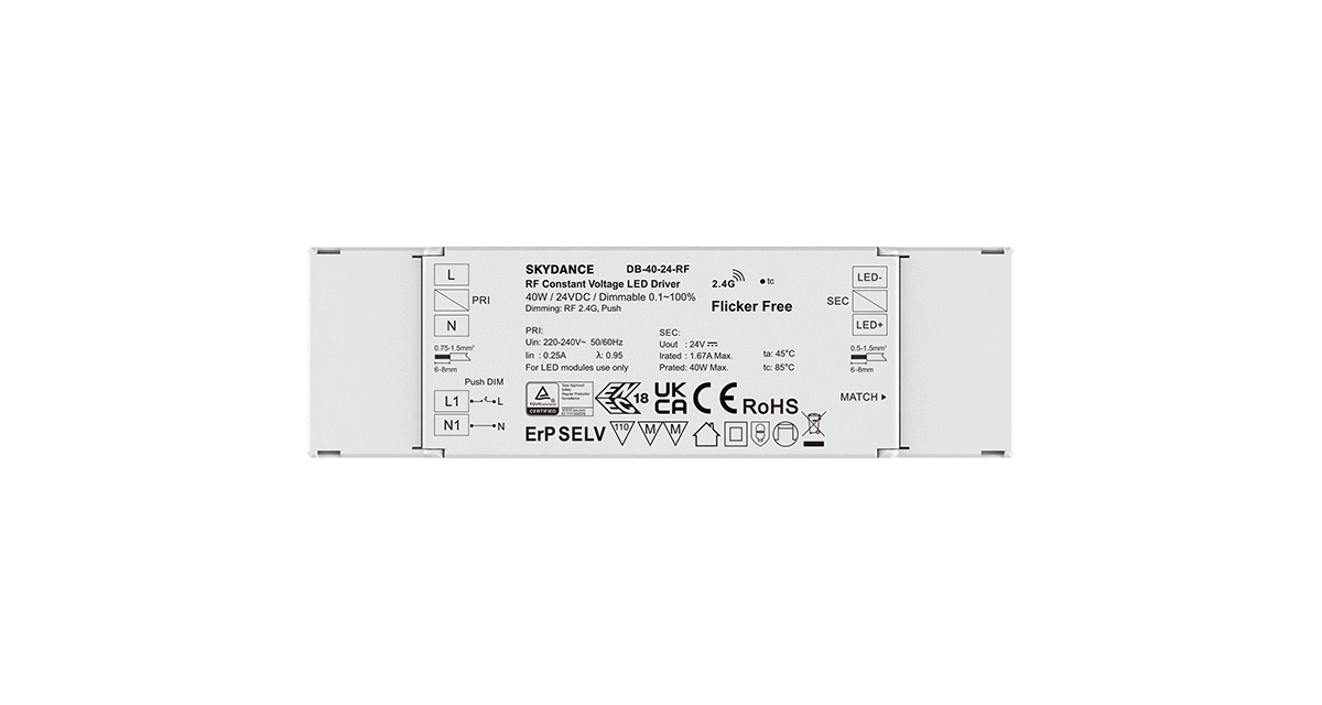 40W 24V RF Dimmable LED Driver(Push Dim) DB-40-24-RF
