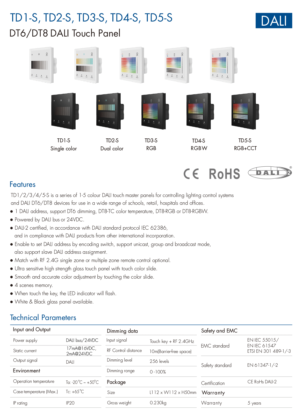 1 Zone Wall Mounted Touch DALI Panel TD2-S