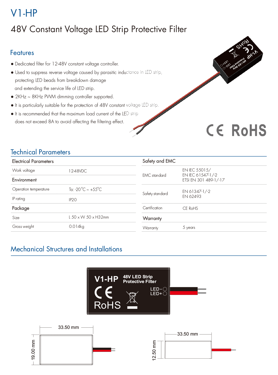 12-48VDC 1CH CV LED Strip Protective Filter V1-HP