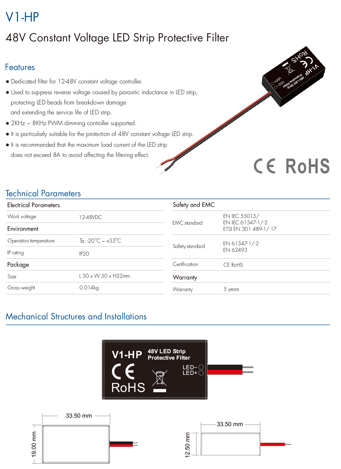 12-48VDC 1CH CV LED Strip Protective Filter V1-HP