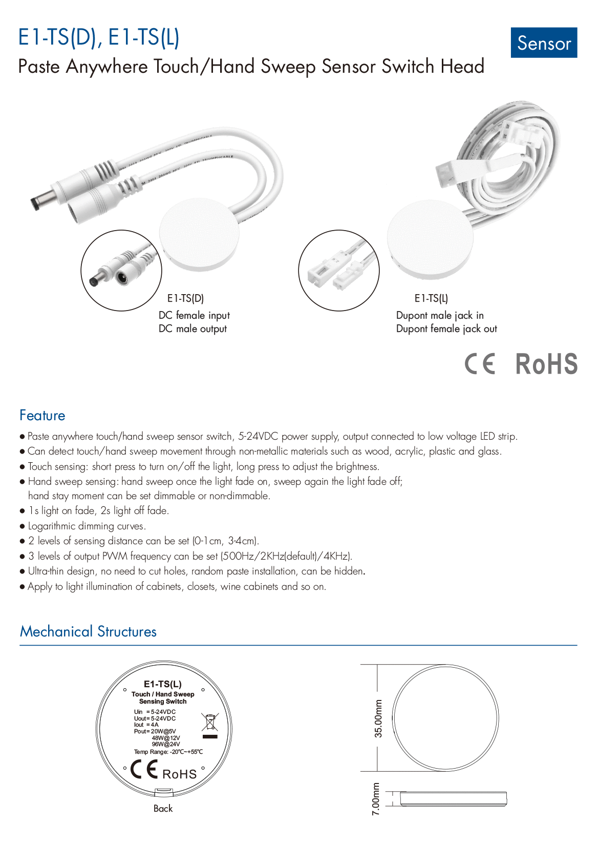 Paste Anywhere Touch/Hand Sweep Sensor Switch Head E1-TS(D)