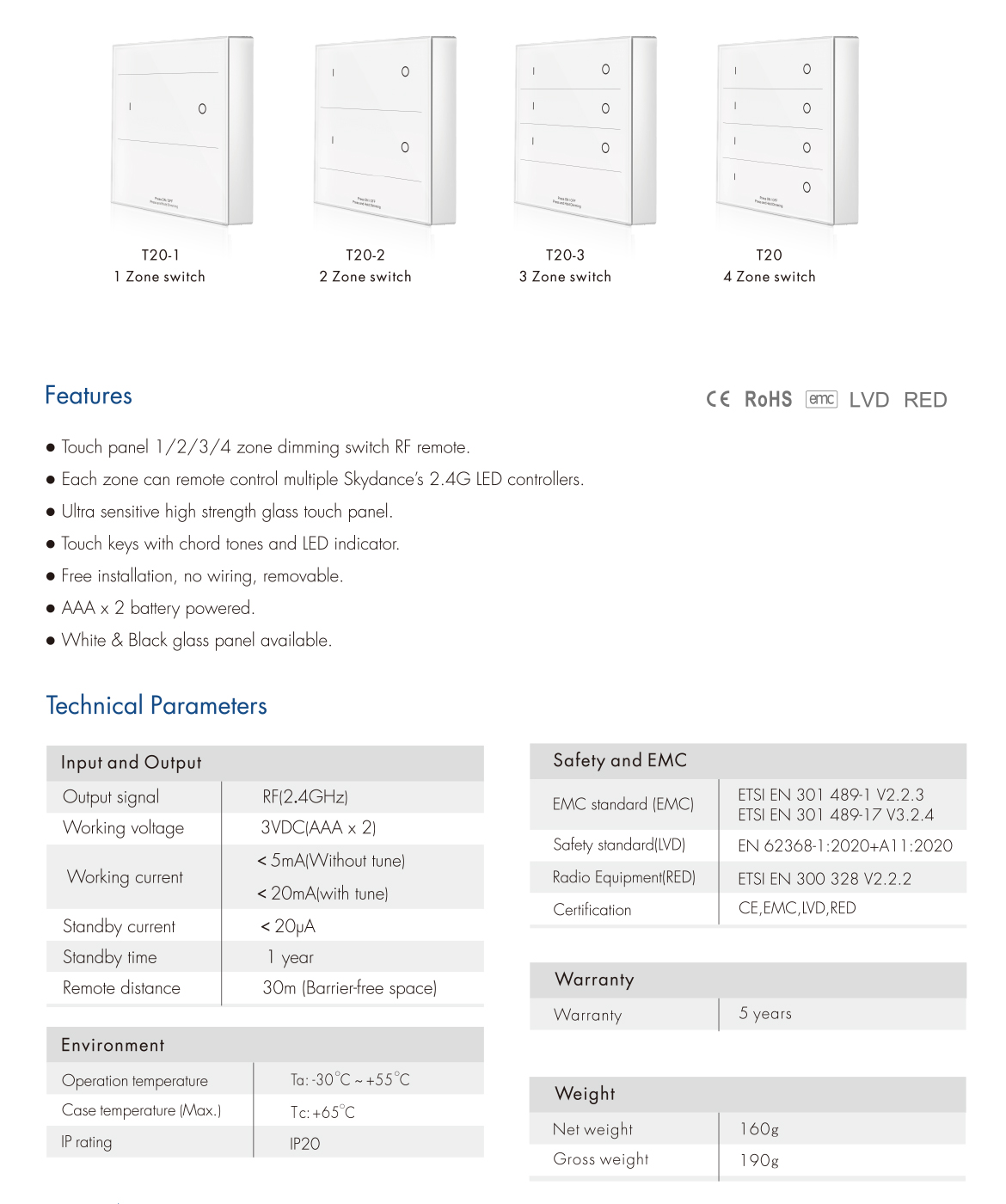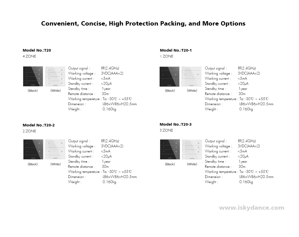 1 Zone Dimming Remote Control(2*AAA Battery) T20-1