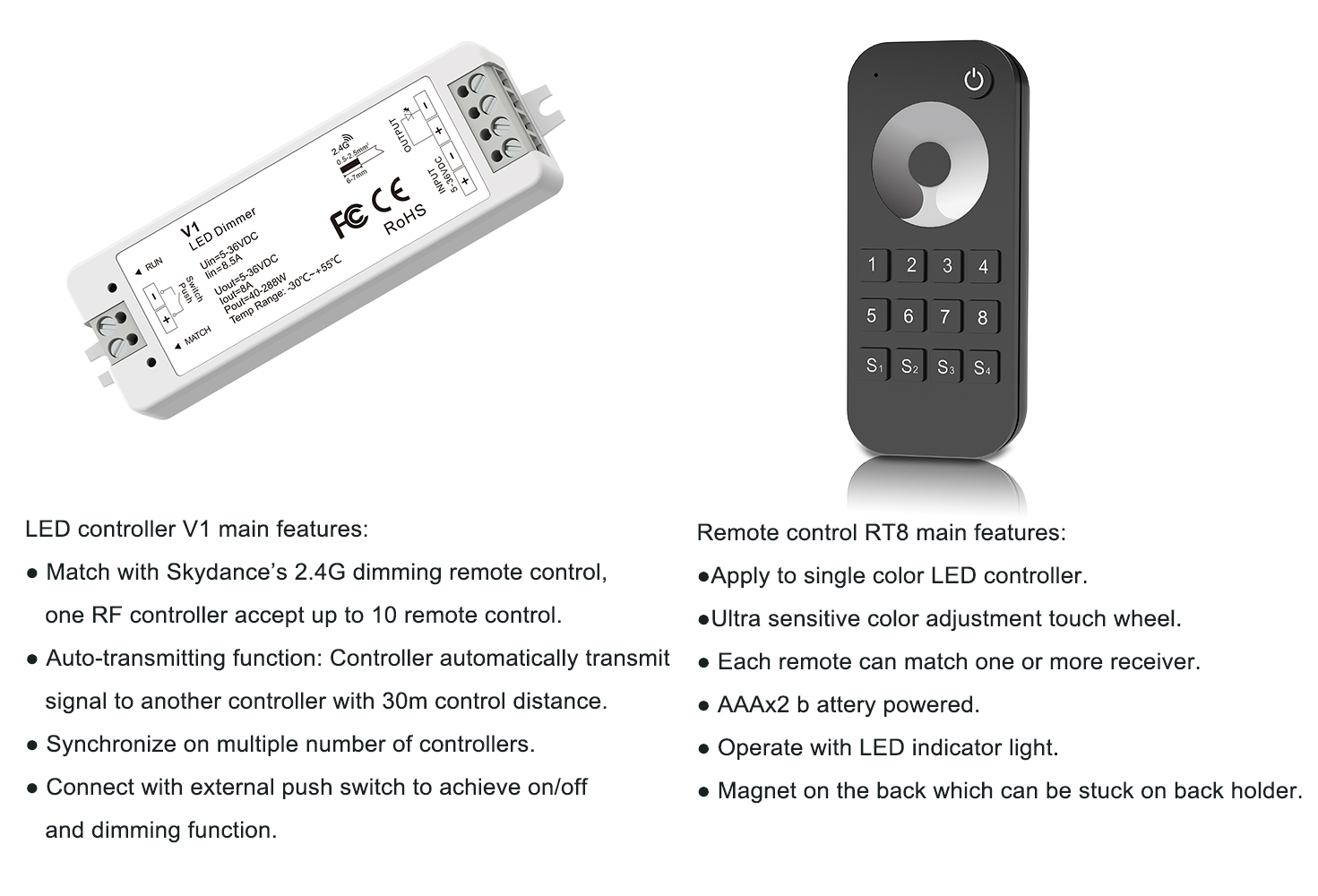 Skydance LED controller V1 and remote control RT8 have been used for wireless lighting systems, which allows office workers to: