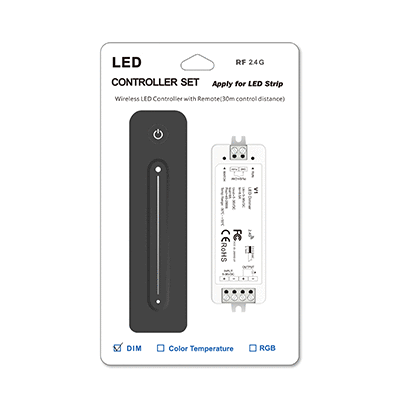 1. The dimming (1 channel) controller can be matched with all remote controls (including hand-held remote, panel remote, desktop remote of dimming, CCT, RGB, RGBW and RGB+CCT), achieving 0-100%dimming, 256 level brightness, 4096 level gray-scale.