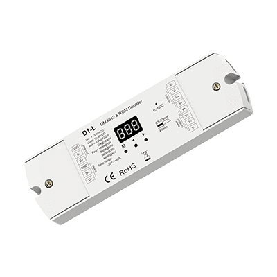 4. To control single color, dual color, RGB, RGBW or RGB+CCT constant voltage LED lighting with 1/3/4/5/12/24 channels CV DMX decoder.