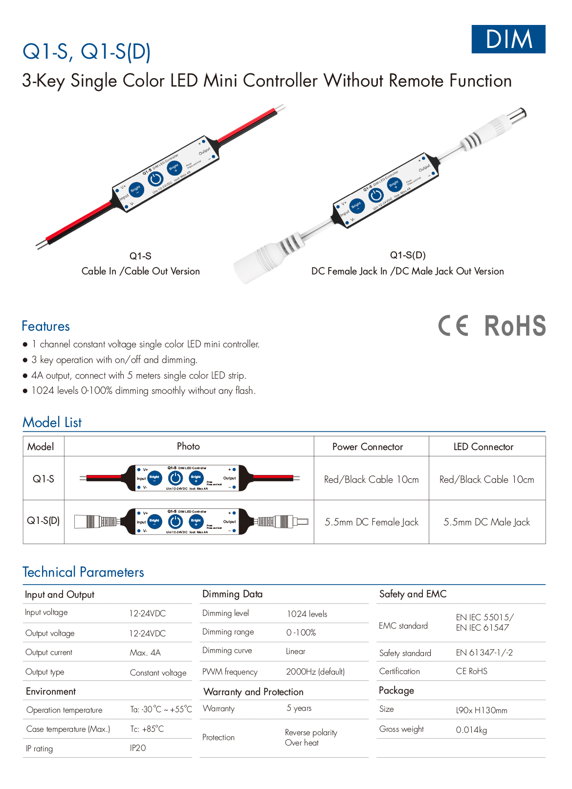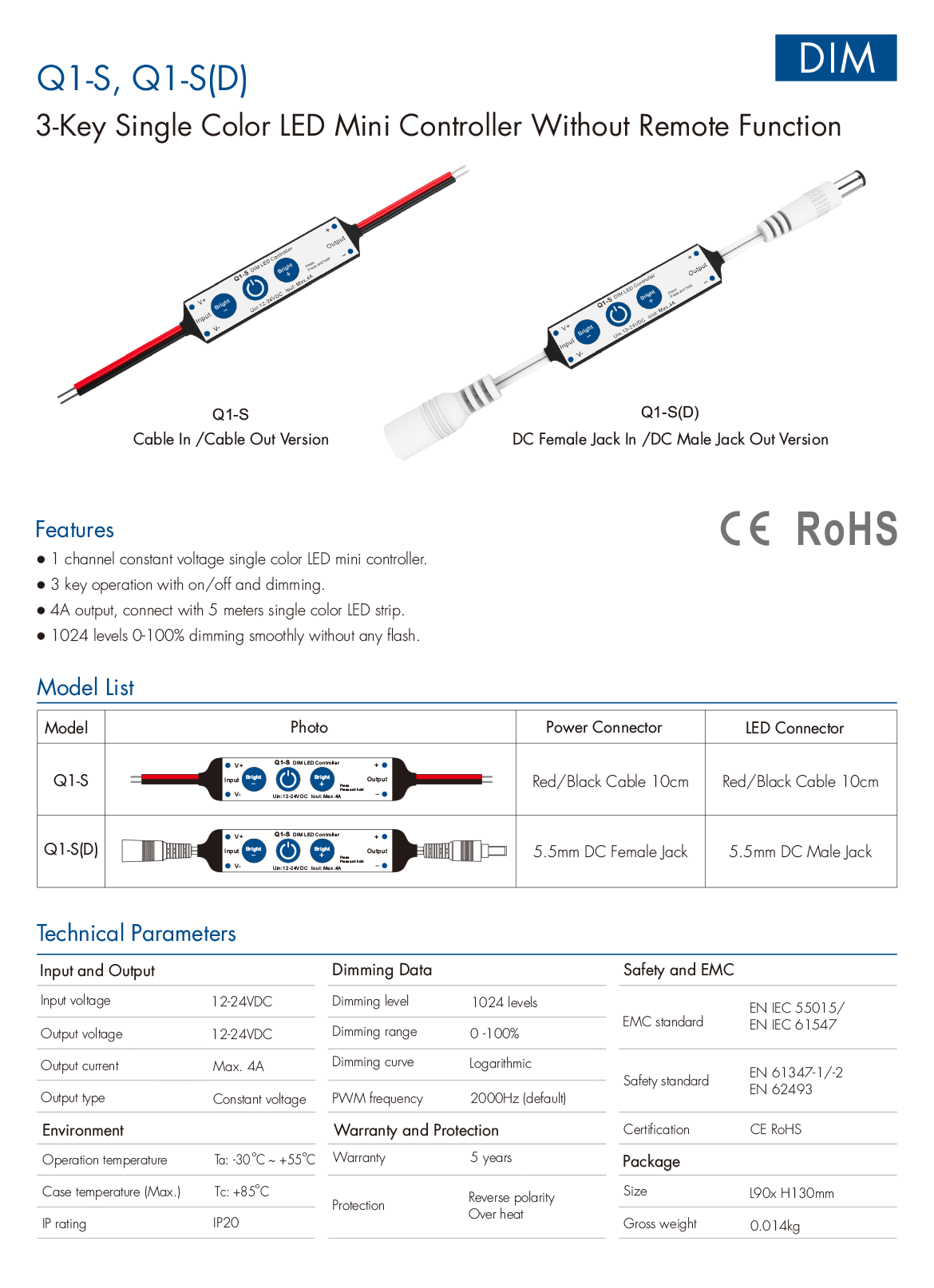 1CH*4A 12-24VDC 3-Key Mini Controller Q1-S( without RF)