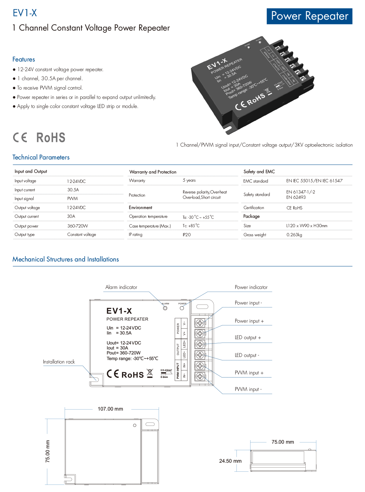 1CH*30A 12-24VDC CV Power Repeater EV1-X