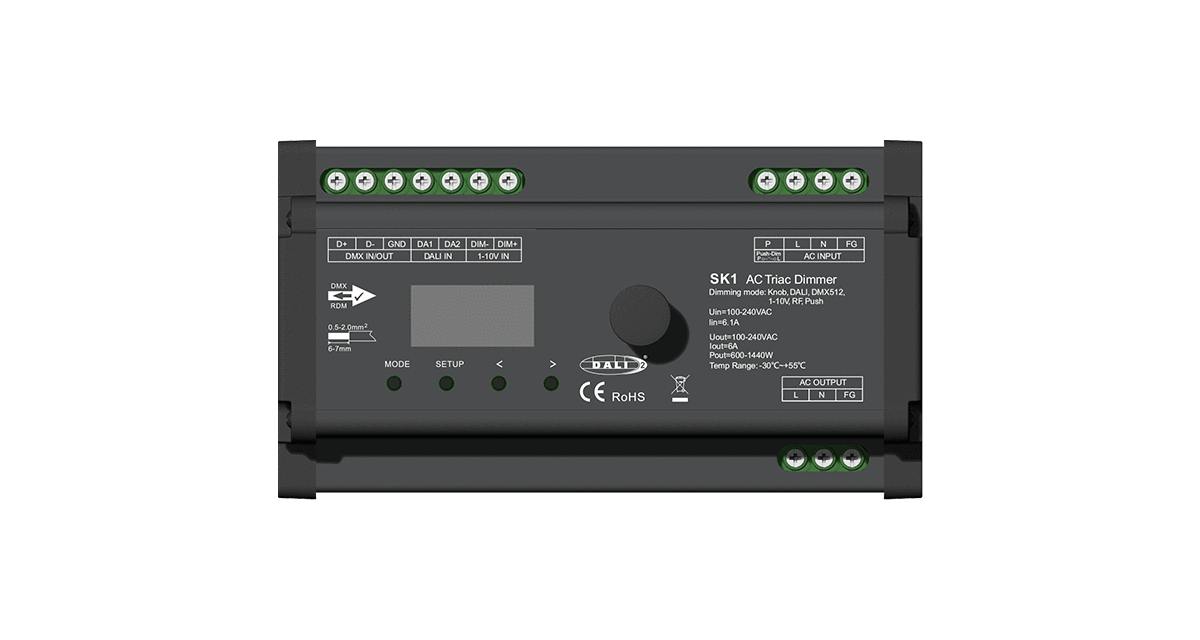 1CH*6A RF AC Triac Dimmer SK1(Knob, DALI, DMX512, 1-10V)