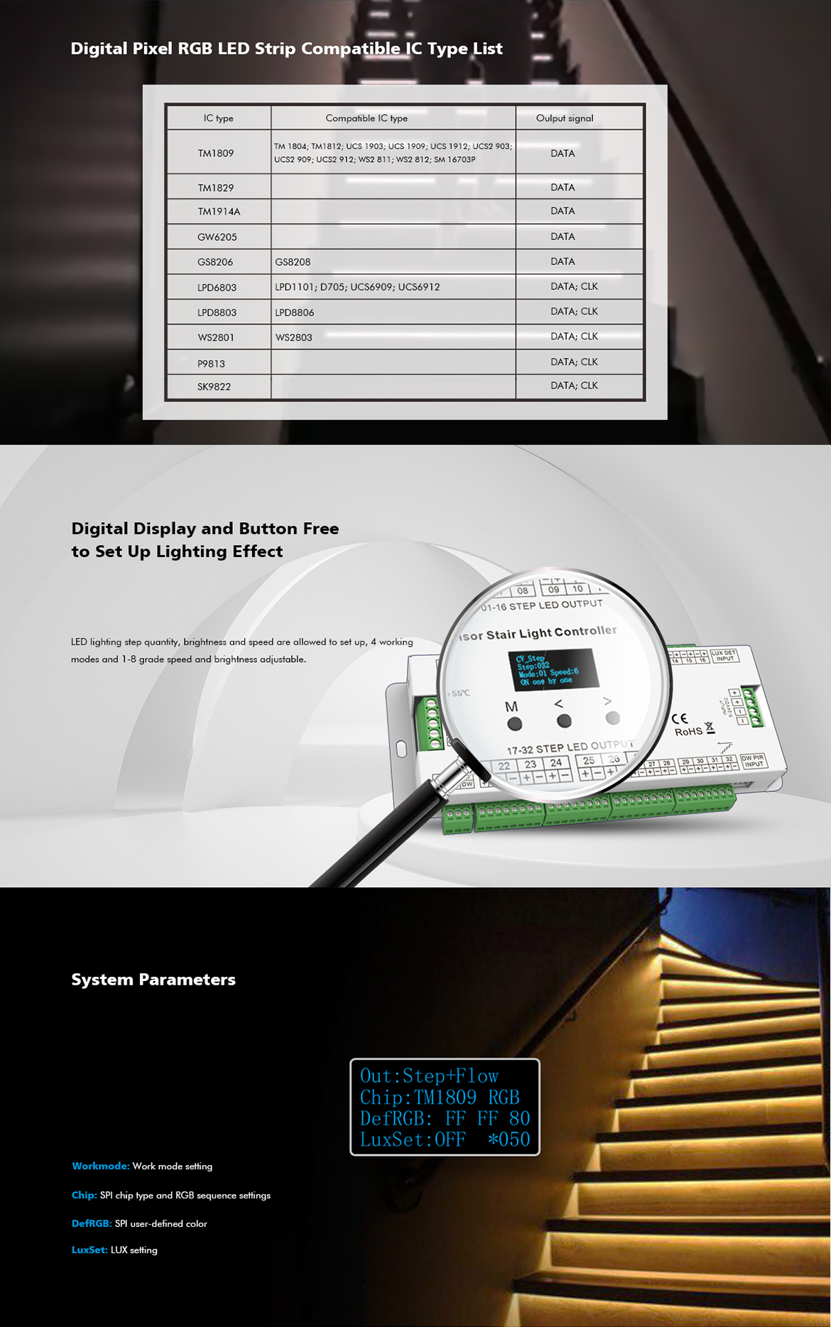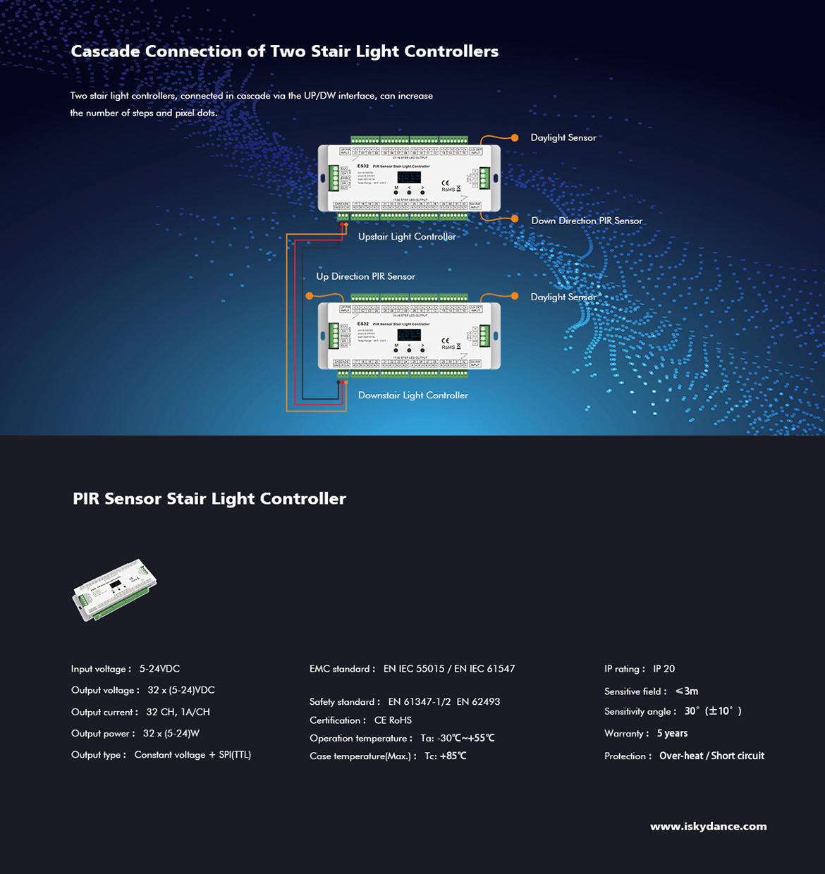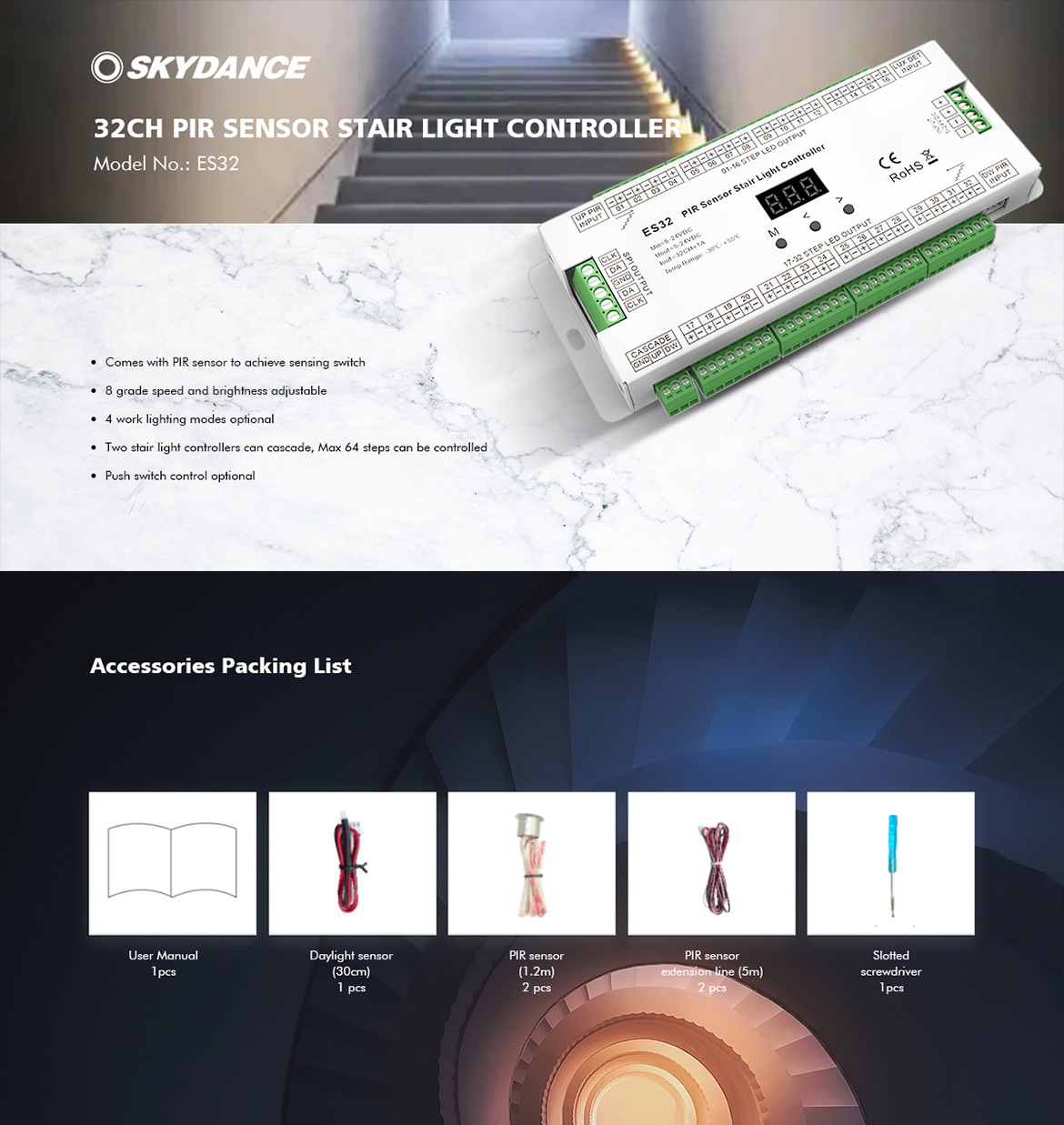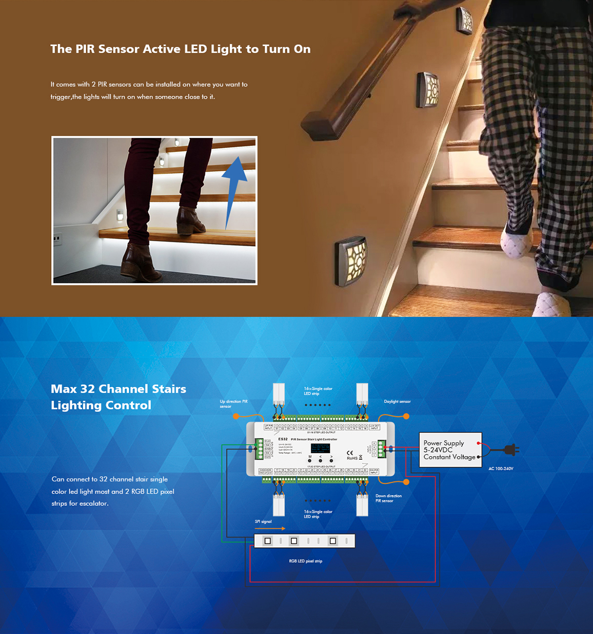 5-24VDC 32CH*1A PIR Sensor Stair Light Controller ES32