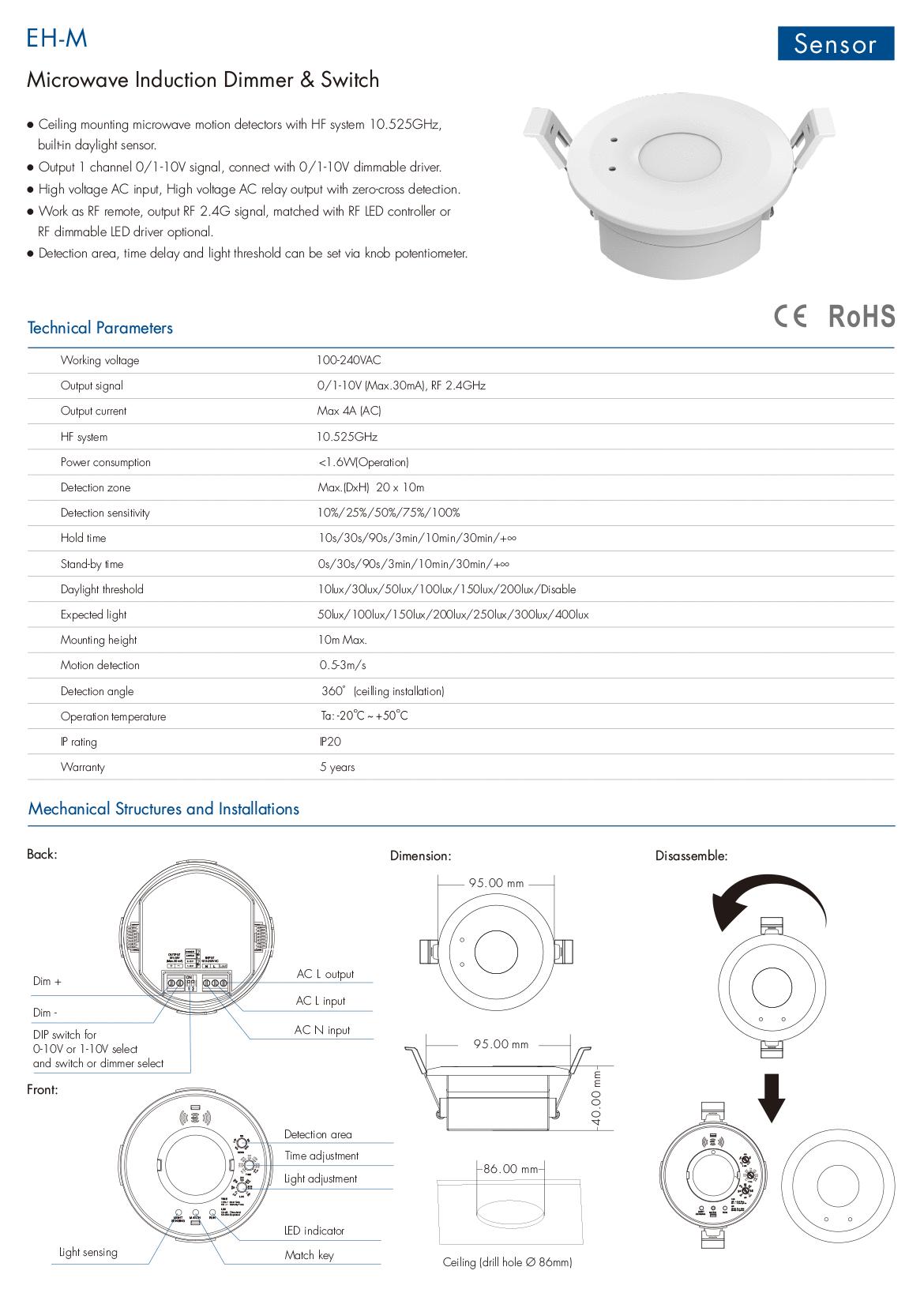 100-240VAC Microwave Induction Dimmer & Switch (RF/0-10V) EH-M