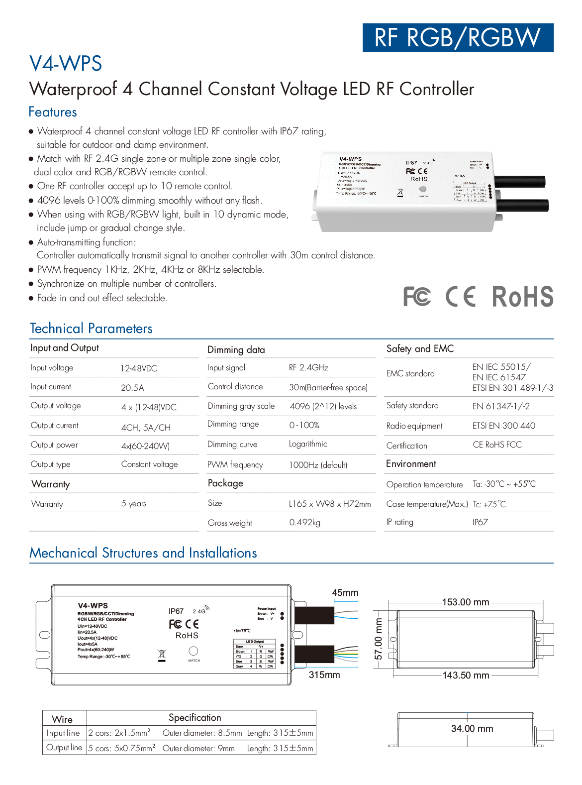 4CH*5A 12-48VDC IP67 Waterproof Controller V4-WPS