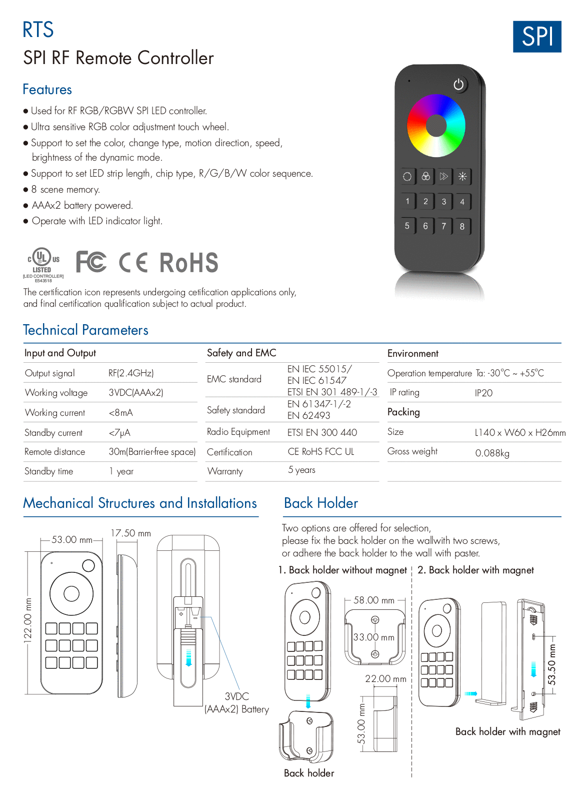1 Zone SPI RGB/RGBW Remote RTS