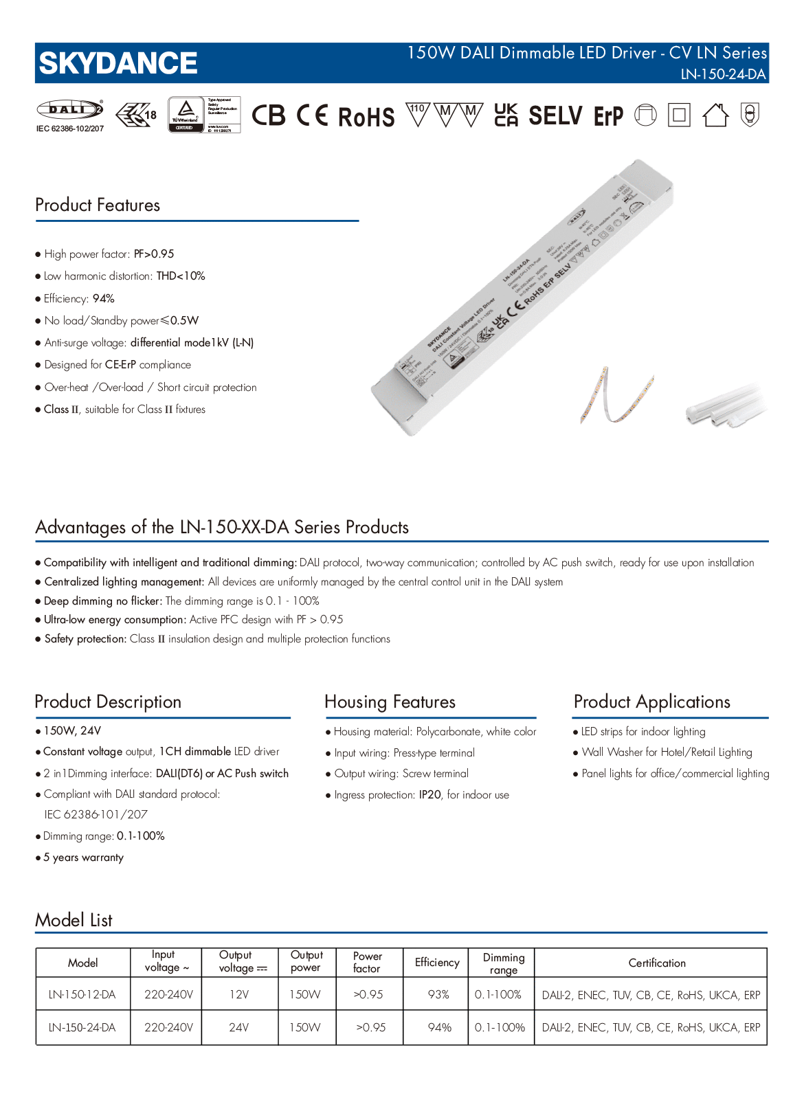 150W 24V DALI Dimmable LED Driver LN-150-24-DA