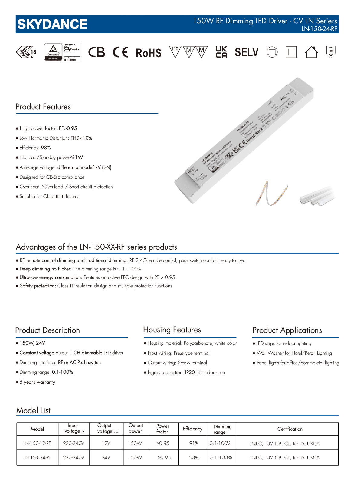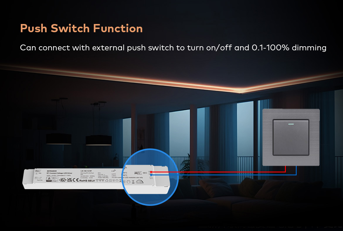 150W 24V RF Dimmable LED Driver(Push Dim) LN-150-24-RF