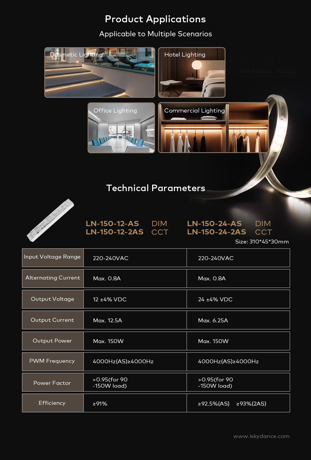 150W 24V 0/1-10V CCT LED Driver LN-150-24-2AS
