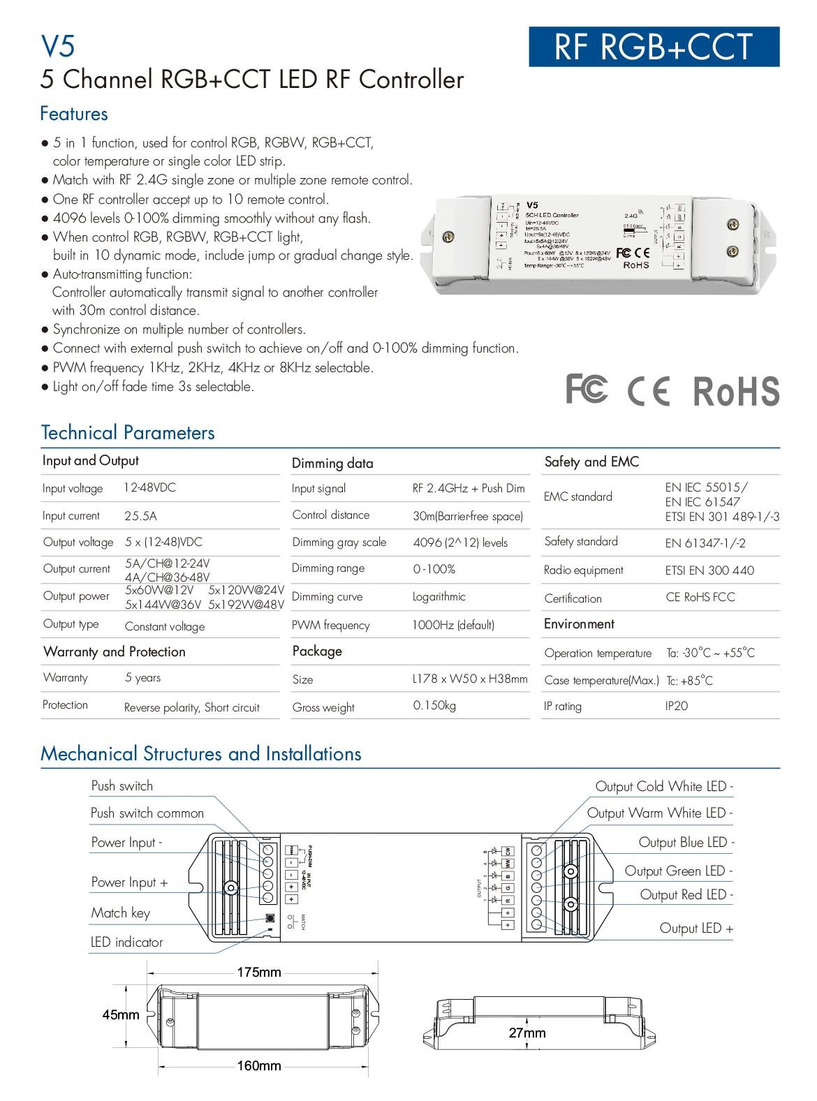 5CH*5A 12-48VDC CV Controller(Push Dim) V5