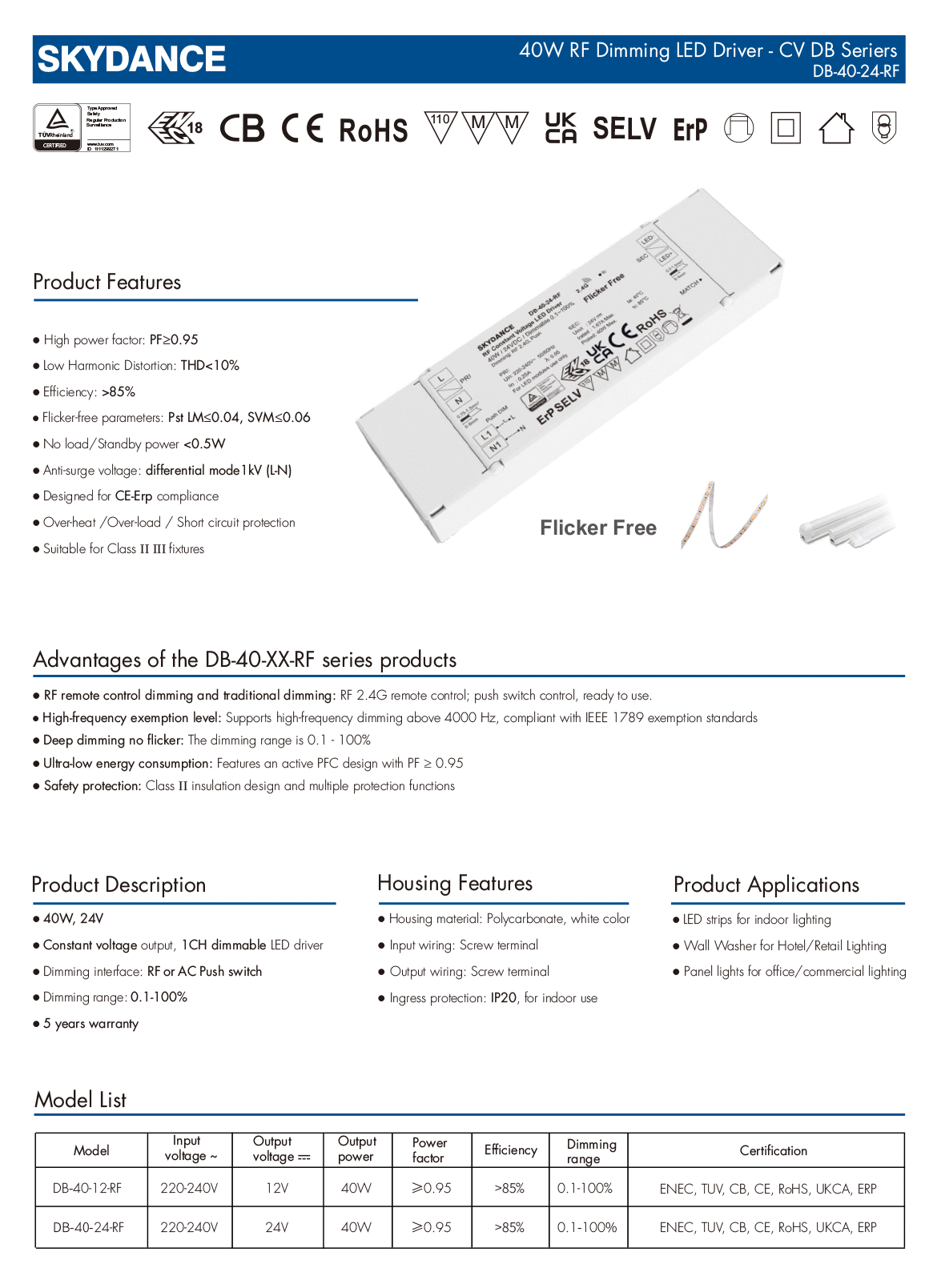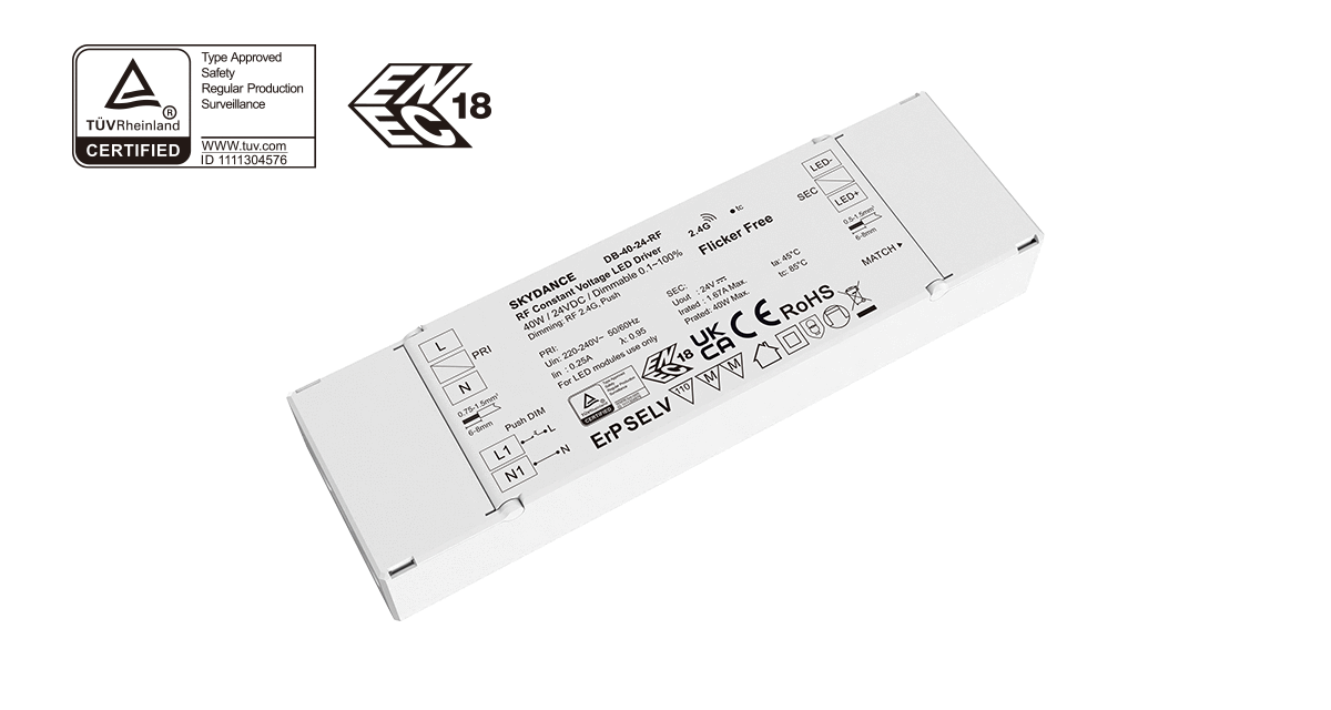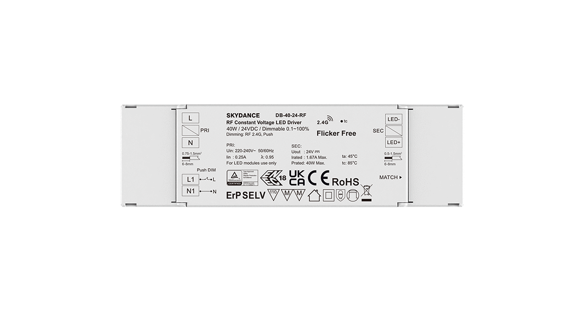 40W 24V RF Dimmable LED Driver(Push Dim) DB-40-24-RF
