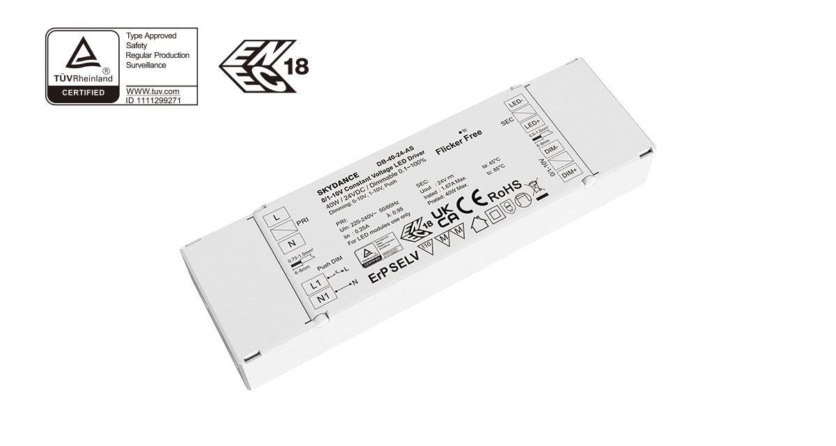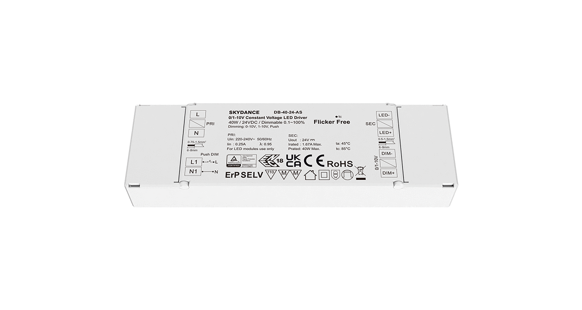 40W 24V 0/1-10V Dimmable LED Driver DB-40-24-AS