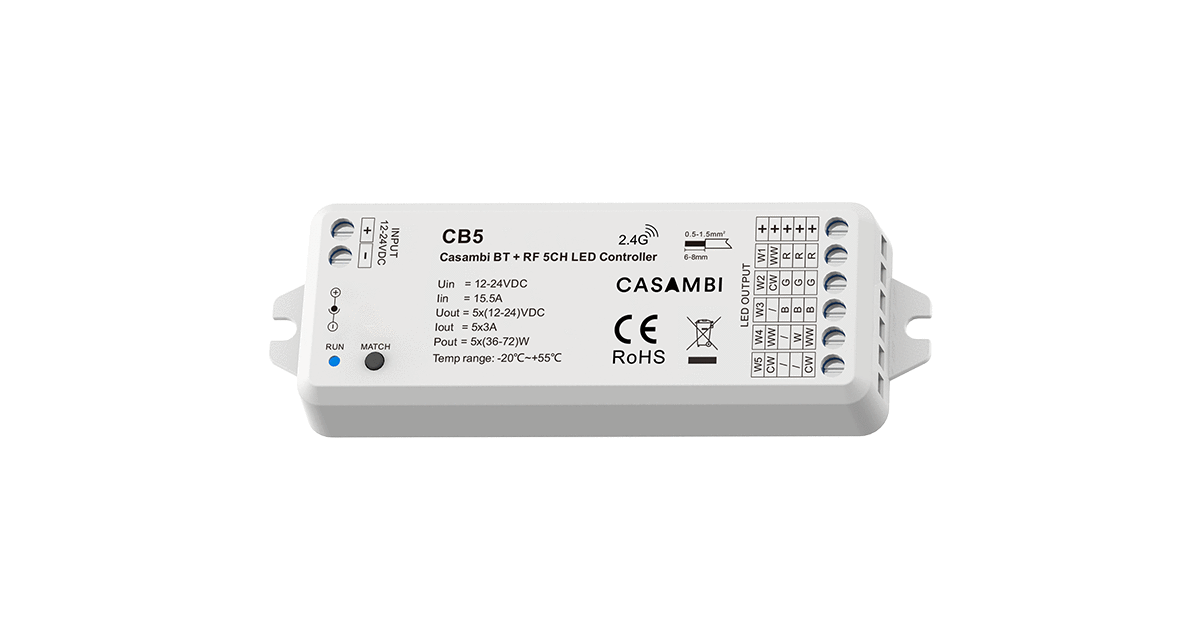 5CH*3A 12-24VDC Casambi Bluetooth + RF CV Controller CB5