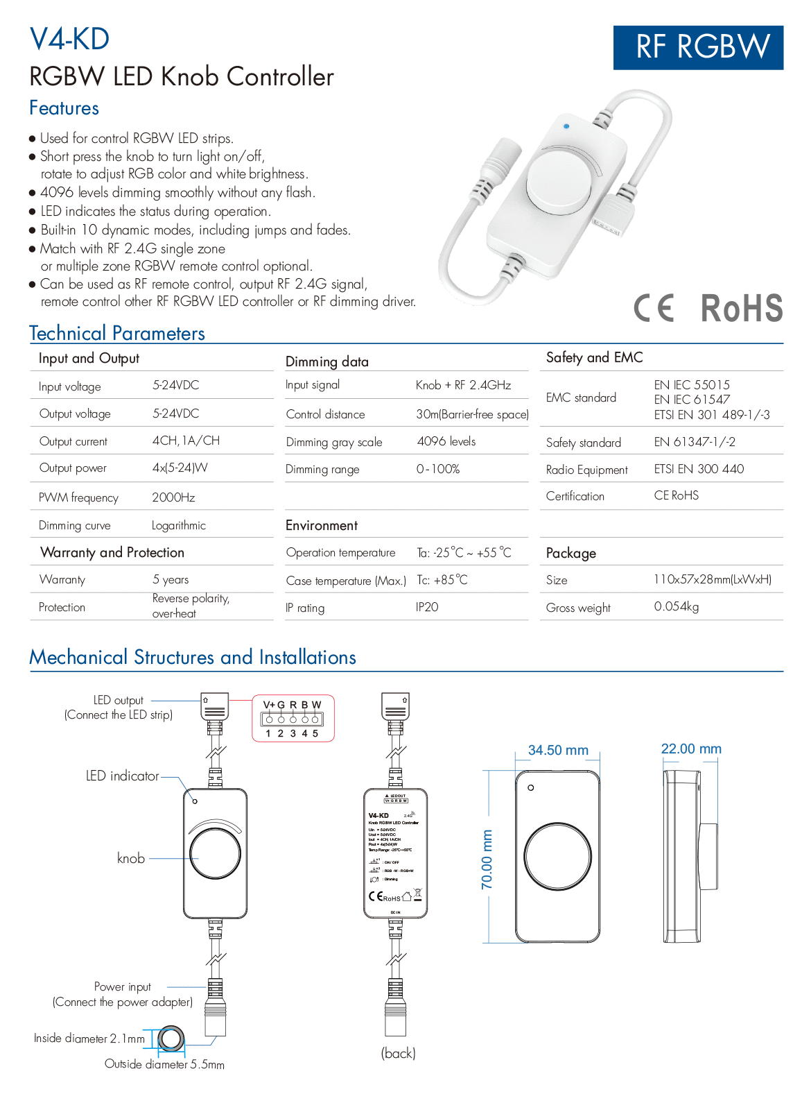 4CH*1A 5-24VDC Knob CV Controller V4-KD