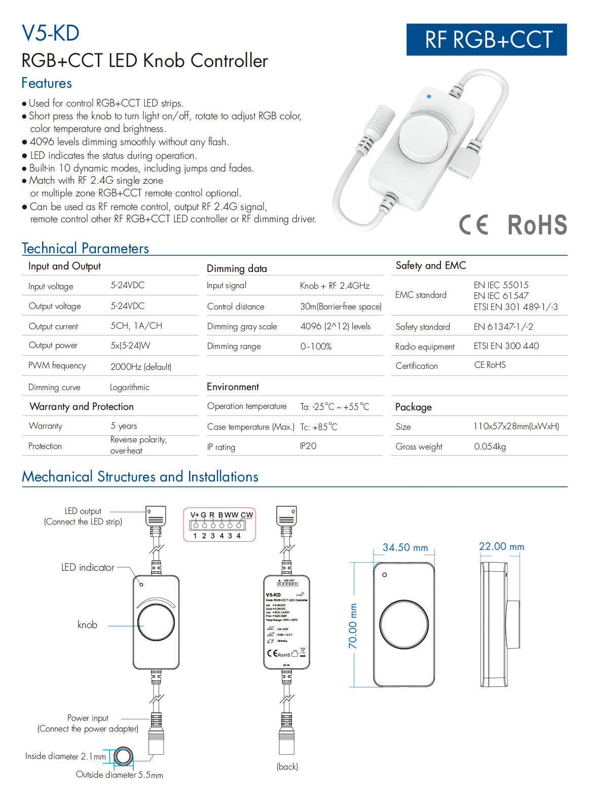 5CH*1A 5-24VDC Knob CV Controller V5-KD