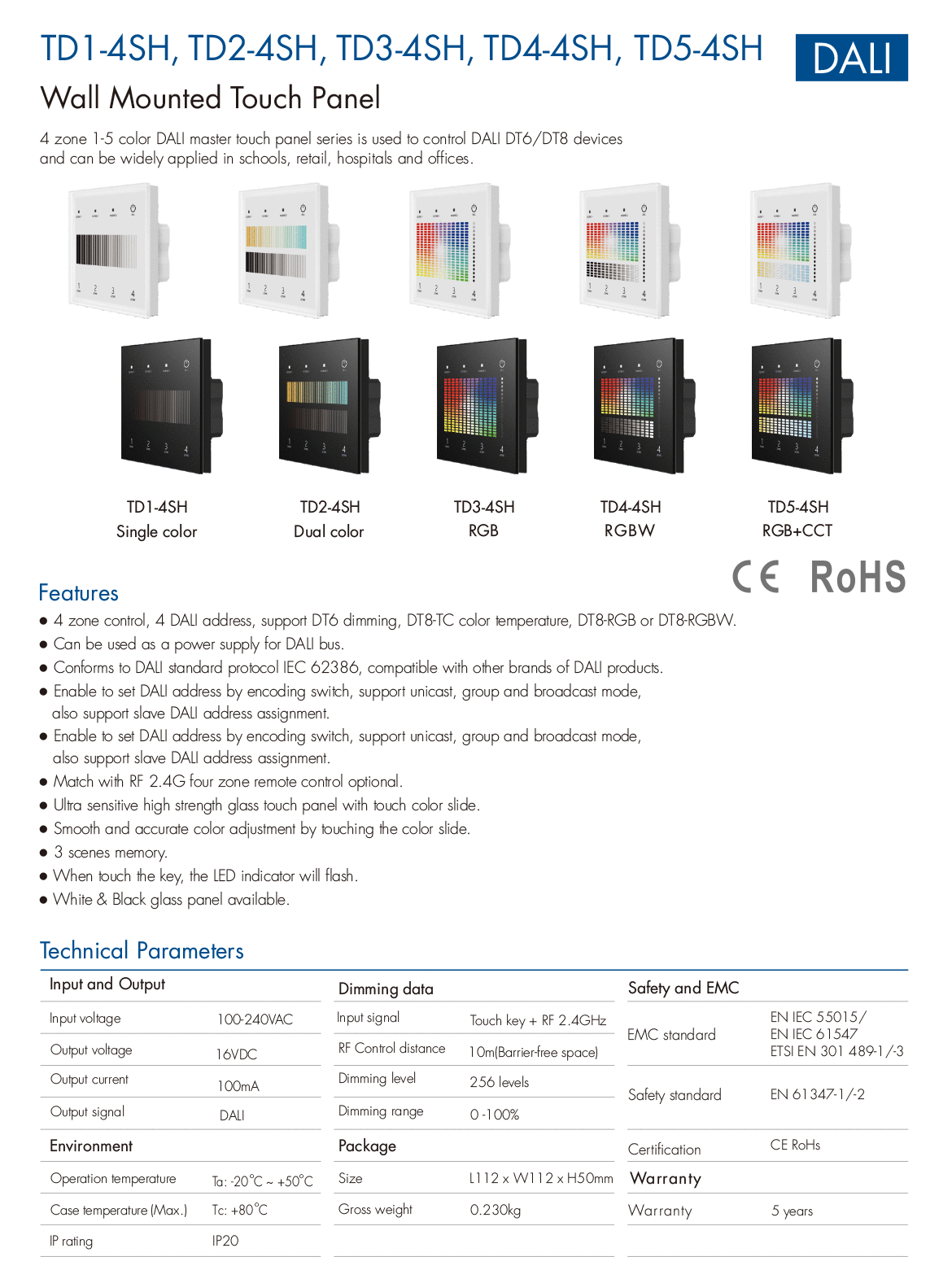 4 Zone Wall Mounted Touch DALI Panel TD4-4SH