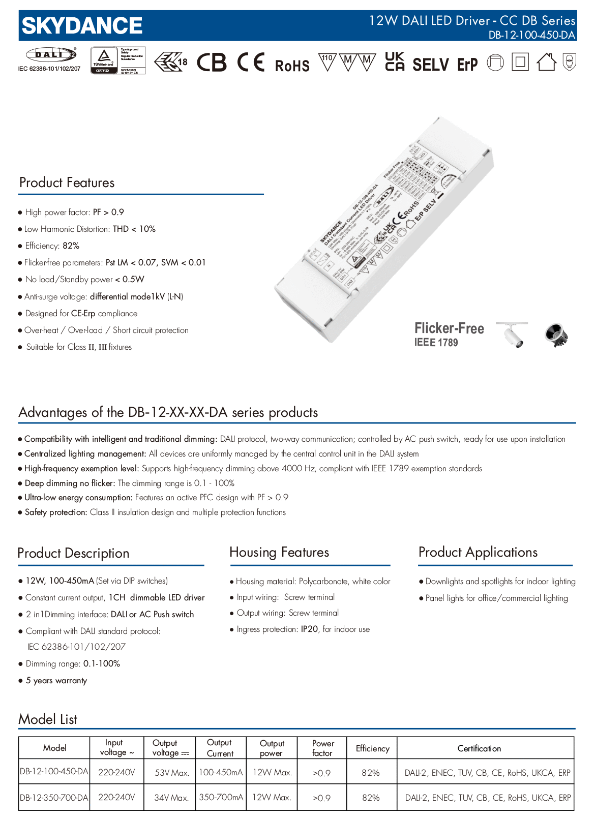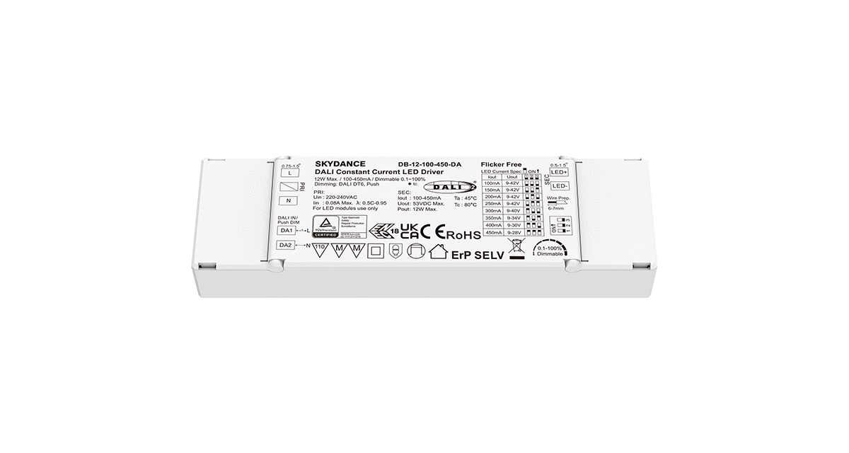 12W 100-450mA DALI Dimmable LED Driver DB-12-100-450-DA