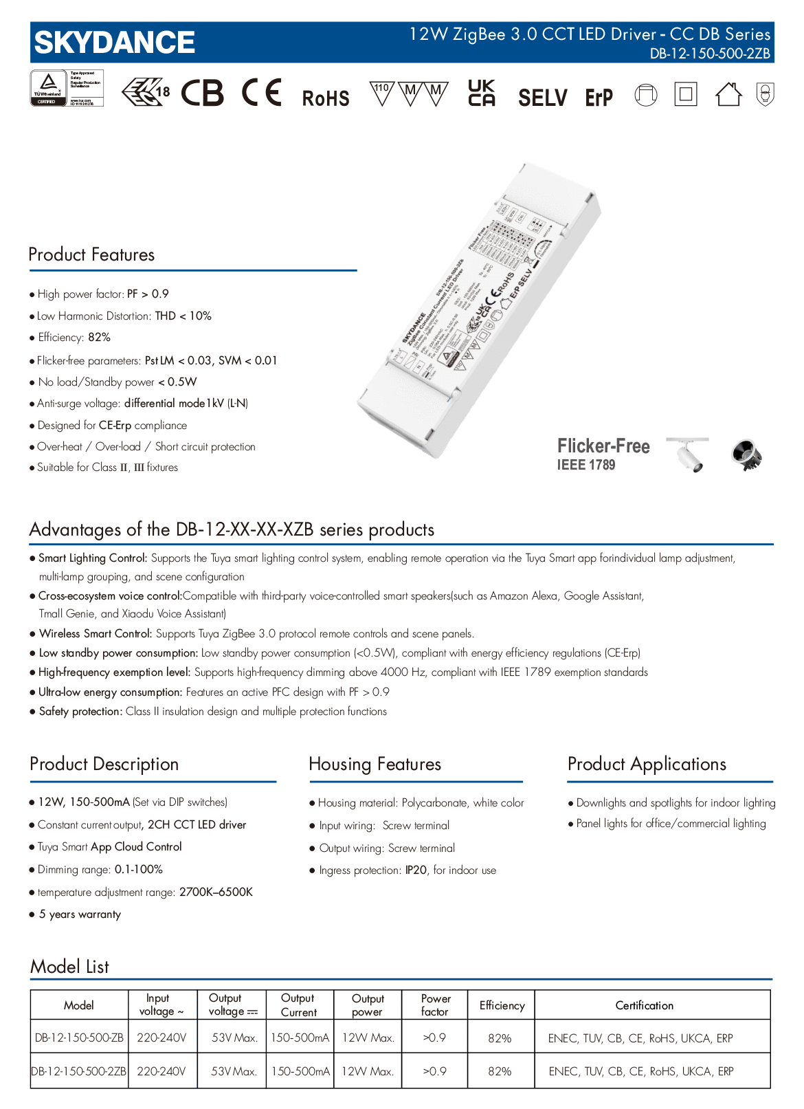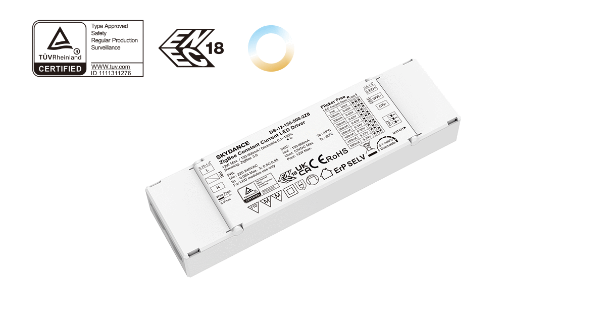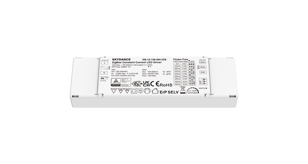 9-42VDC 2CH*(150-500mA) 12W Zigbee Constant Current CCT LED Driver DB-12-150-500-2ZB