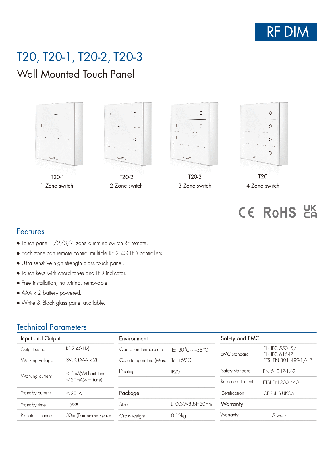 1 Zone Dimming Remote Control(2*AAA Battery) T20-1