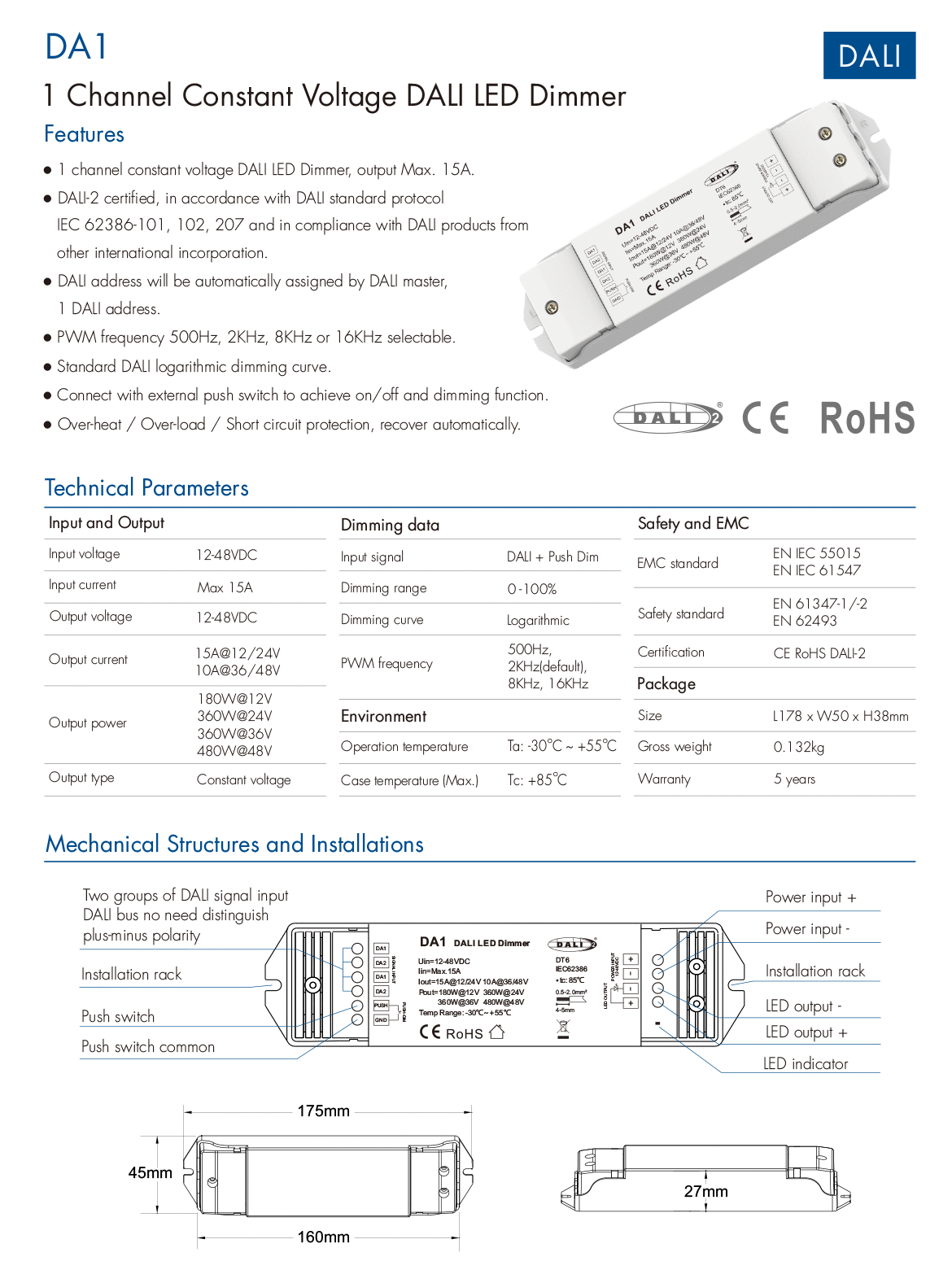 1CH*15A 12-48VDC CV DALI Dimmer DA1(DT6)